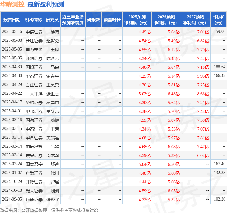 西南证券股份有限公司王谋,白加一近期对华峰测控进行研究并发布了研究报告《业绩高速增长,数字测试机打开远期成长空间》,下调华峰测控目标价至173.8元,给予买入评级。