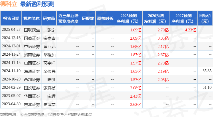 最新盈利预测明细如下:
