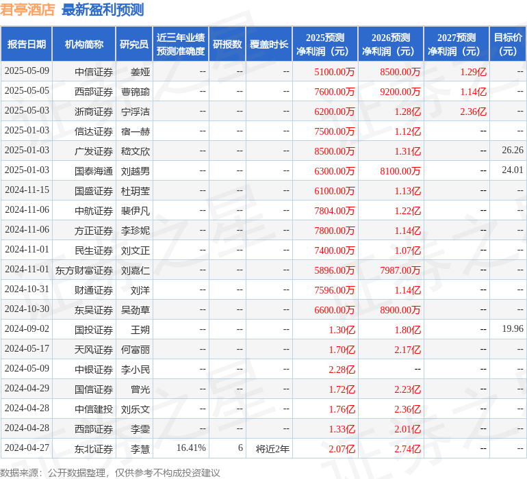 最新盈利预测明细如下: