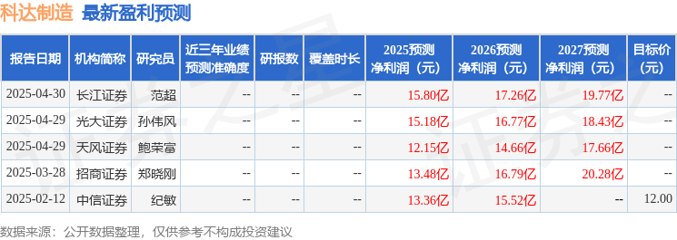 最新盈利预测明细如下: