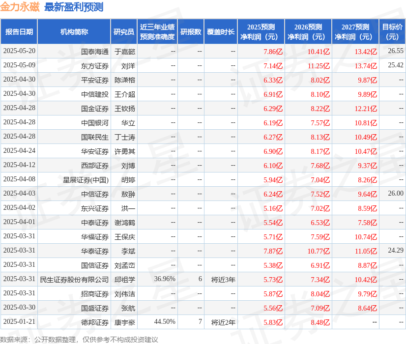 华源证券股份有限公司田源,田庆争,陈婉妤,张明磊,项祈瑞近期对金力永磁进行研究并发布了研究报告《高性能磁材迎盈利拐点,机器人磁组件打开远期成长空间》,首次覆盖金力永磁给予增持评级。