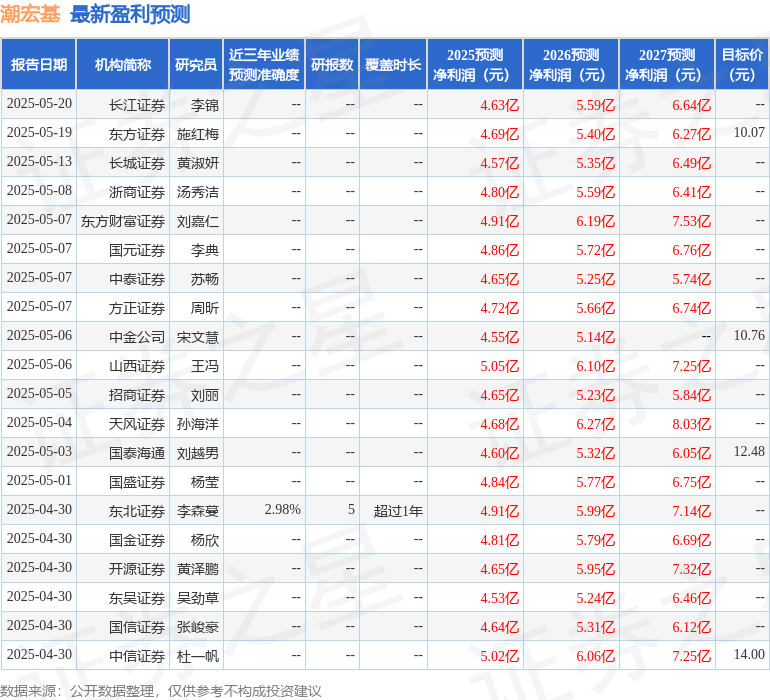最新盈利预测明细如下: