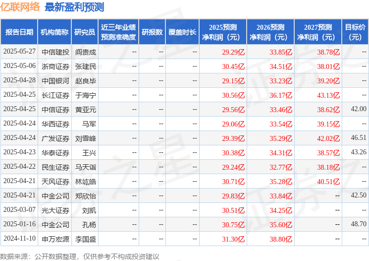 最新盈利预测明细如下: