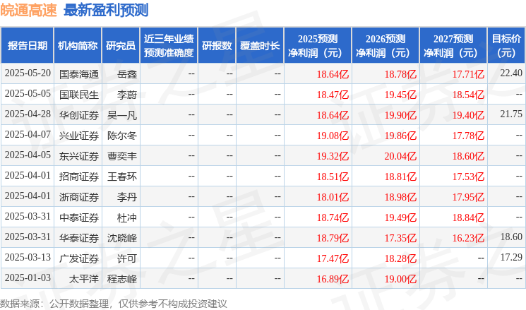 国金证券股份有限公司郑树明近期对皖通高速进行研究并发布了研究报告《核心公路红利标的 外延内生提高盈利》,首次覆盖皖通高速给予买入评级,目标价20.46元。