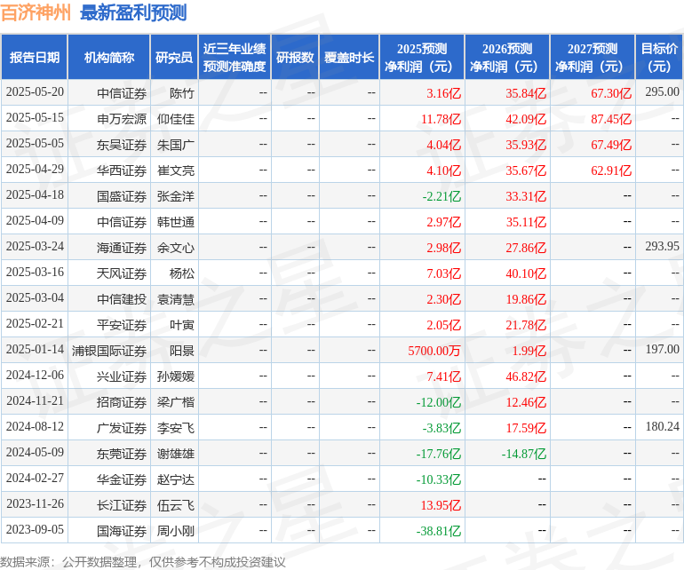 最新盈利预测明细如下: