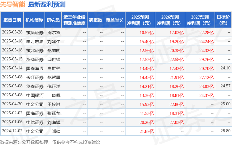 最新盈利预测明细如下:
