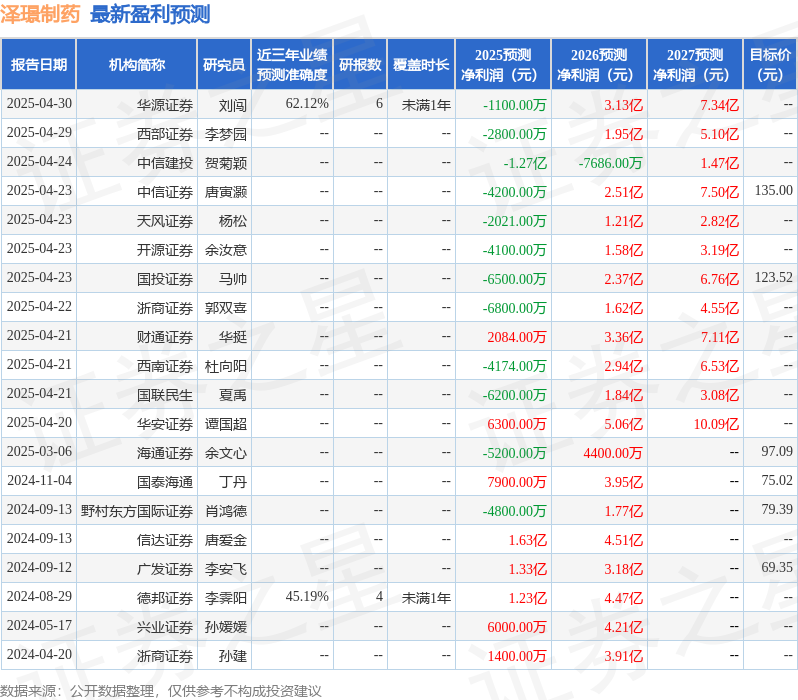 最新盈利预测明细如下: