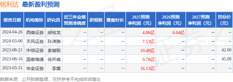 最新盈利预测明细如下: