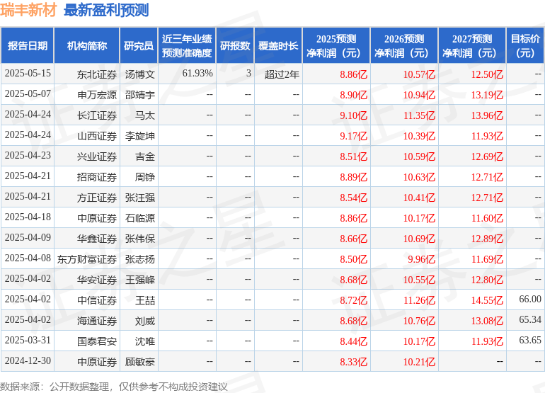 最新盈利预测明细如下: