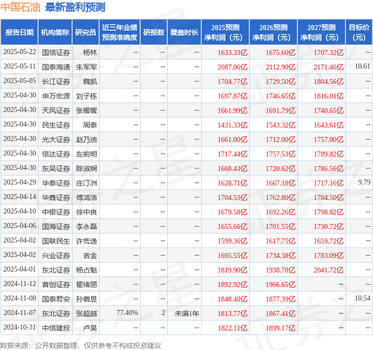 我们预计2025-2027年归母净利润为1,679.58亿元、1,692.26亿元、1,798.82亿元,对应市盈率为9.7倍、9.6倍、9.0倍,公司油气和新能源技XM外汇官网术深度耦合,可持续发展动能显著增强,维持买入评级。