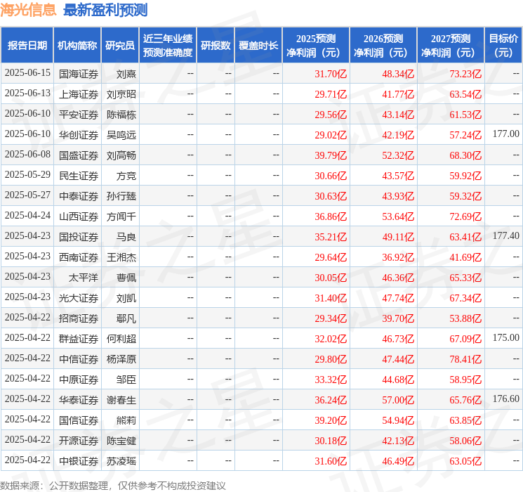 最新盈利预测明细如下: