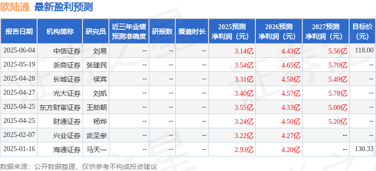 天风证券股份有限公司吴立,孙潇雅,高鑫近期对欧陆通进行研究并发布了研究报告《开关电源龙头企业,数据中心电源开拓成长曲线》,首次覆盖欧陆通给予增持评级,目标价126.53元。