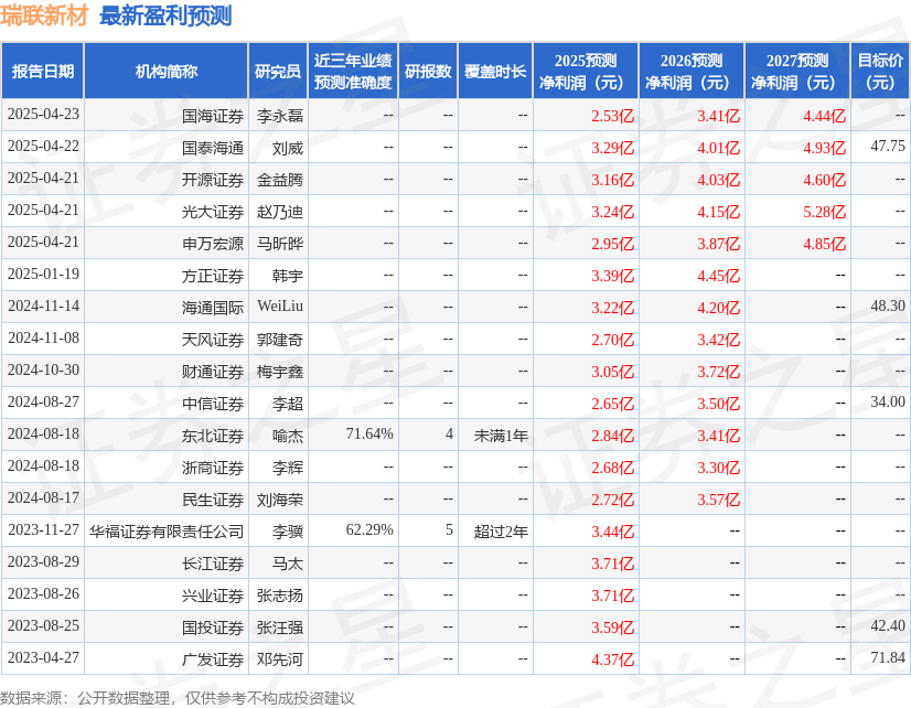 最新盈利预测明细如下: