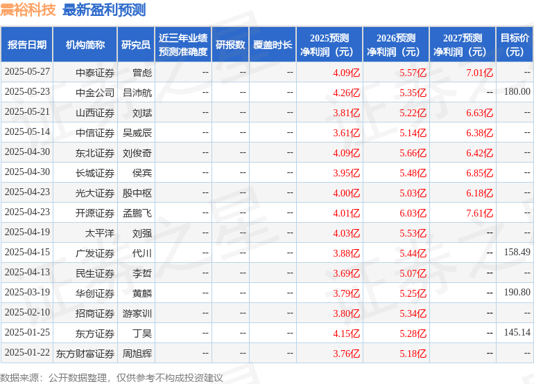 最新盈利预测明细如下: