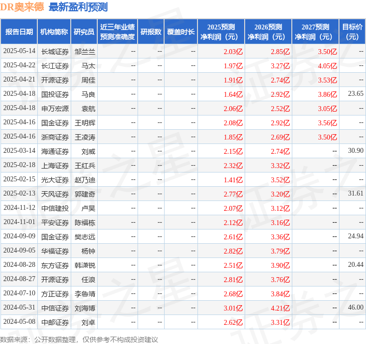最新盈利预测明细如下: