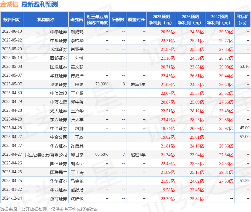 最新盈利预测XM外汇官网明细如下: