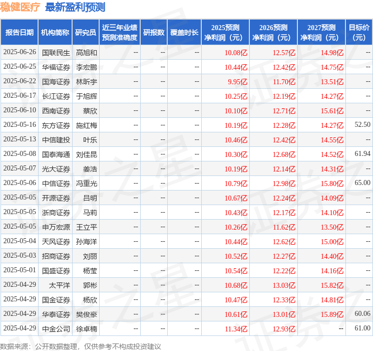 最新盈利预测明细如下: