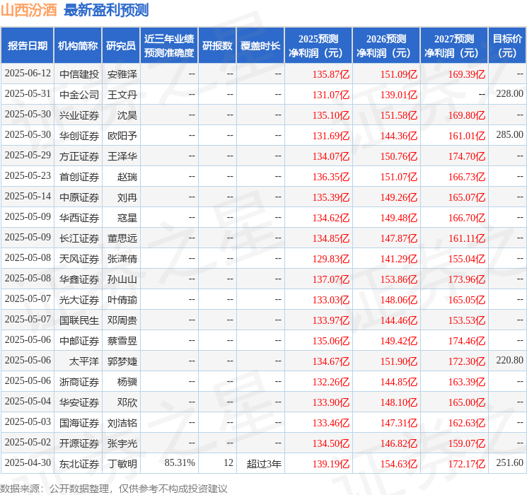 海通国际证券集团有限公司闻宏伟,吴岱禹近期对山西汾酒进行研究并发布了研究报告《跟踪报告:以实力迈入复兴第二阶段》,下调山西汾酒目标价至210.0元,给予增持评级。