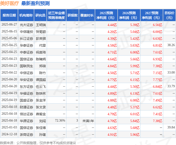 最新盈利预测明细如下: