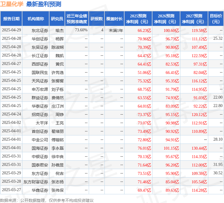最新盈利预测明细如下:
