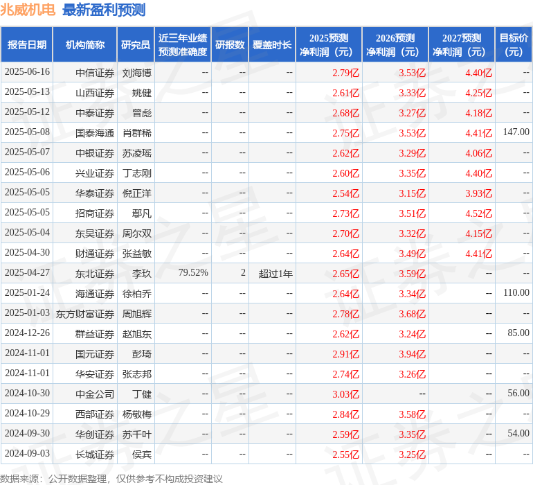 群益证券(香港)有限公司赵旭东近期对兆威机电进行研究并发布了研究报告《公司发布新一代灵巧手,积极推进生态建设》,上调兆威机电目标价至118.0元,给予增持评级。