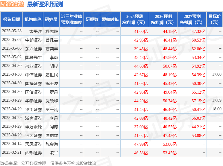 群益证券(香港)有限公司赵旭东近期对圆通速递进行研究并发布了研究报告《邮政局号召“反内卷”,公司盈利有望改善》,下调圆通速递目标价至16.0元,给予增持评级。