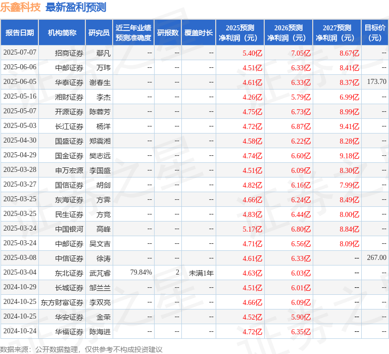 最新盈利预测明细如下: