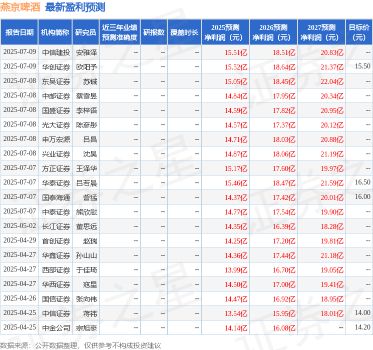 最新盈利预测明细如下:
