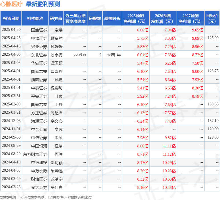 最新盈利预测明细如下: