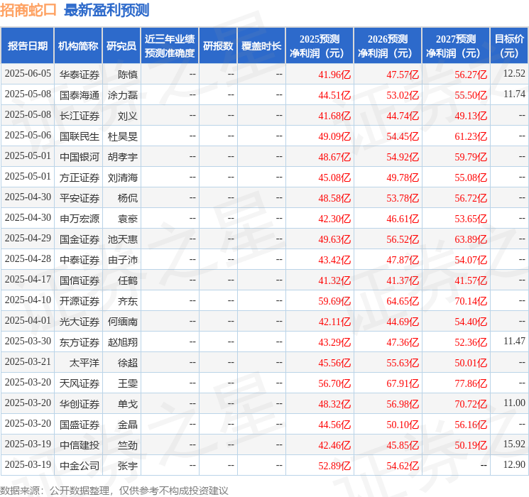 最新盈利预测明细如下:
