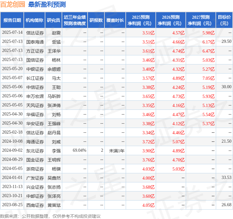 天风证券股份有限公司吴立,陈潇近期对百龙创园进行研究并发布了研究报告《盈利水平持续提升,期待25H2国内阿洛酮糖成长》,给予百龙创园买入评级。