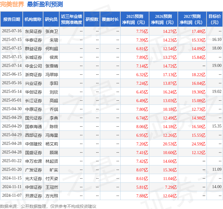开源证券股份有限公司方光照,田鹏近期对完美世界进行研究并发布了研究报告《公司信息更新报告:预计2025H1同比大幅扭亏,关注《异环》上线进展》,给予完美世界买入评级。