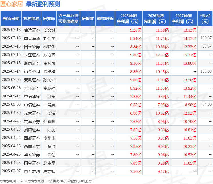 最新盈利预测明细如下: