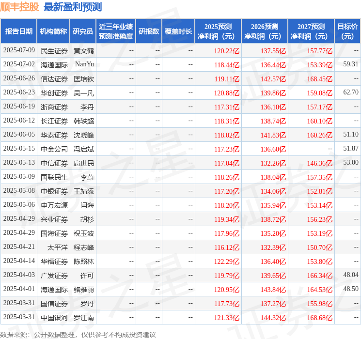 XM外汇官网我们预计公司2025-2027年归母净利润分别为119.11亿元、142.57亿元、168.45亿元,同比分别增长17.1%、19.7%、18.2%,对应7月18日市盈率分别20.3倍、16.9倍、1XM外汇官网4.3倍。公司作为综合快递物流龙头,中长期价值空间广阔,维持“买入”评级。
