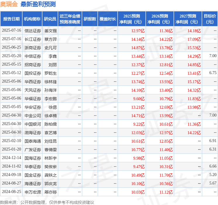 华安证券股份有限公司徐偲,余倩莹近期对奥瑞金进行研究并发布了研究报告《25Q2业绩承压,静待二片罐业务盈利改善》,给予奥瑞金买入评级。