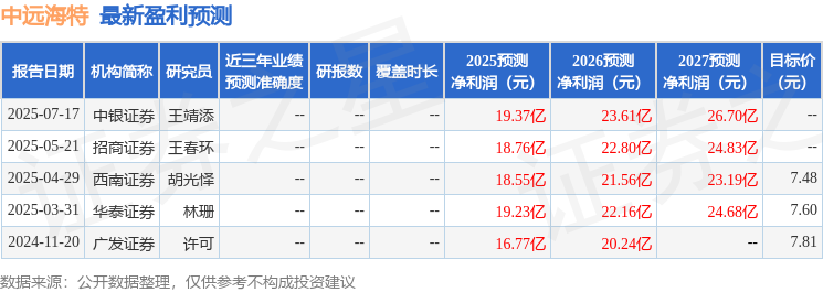 太平洋证券股份有限公司程志峰近期对中远海特进行研究并发布了研究报告《2025H1利润稳健增长,服务国家海洋经济的质效跃升》,给予中远海特增持评级。