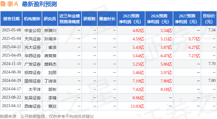最新盈利预测明细如下: