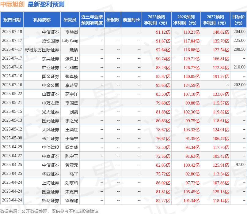 最新盈利预测明细如下:XM外汇官网