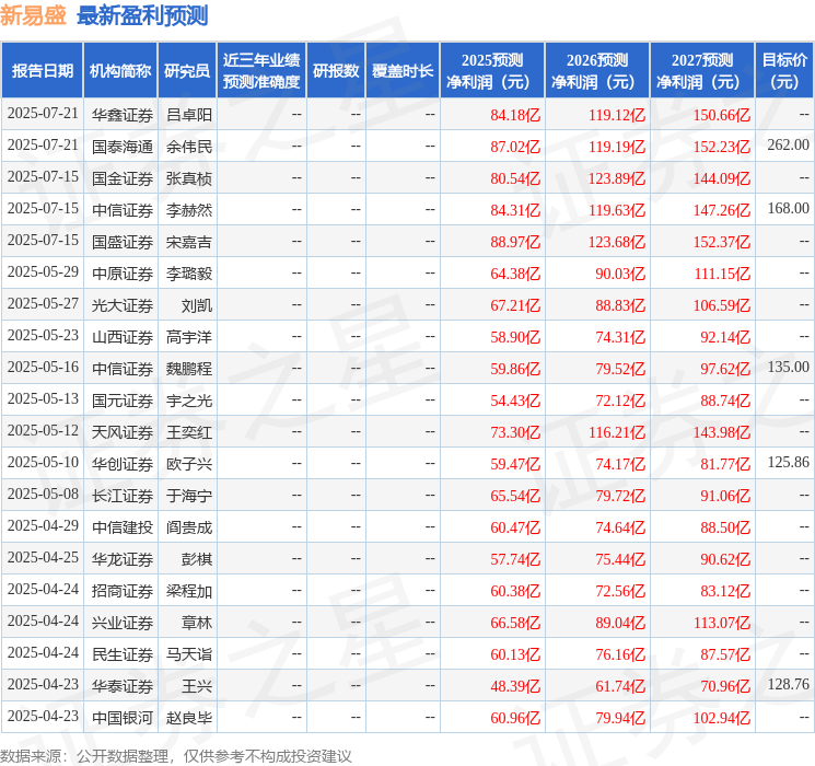 群益证券(香港)有限公司何利超近期对新易盛进行研究并发布了研究报告《上半年净利润超出预期,海外800G光模块需求带动公司业绩增长》,首次覆盖新易盛给予增持评级,目标价210.0元。