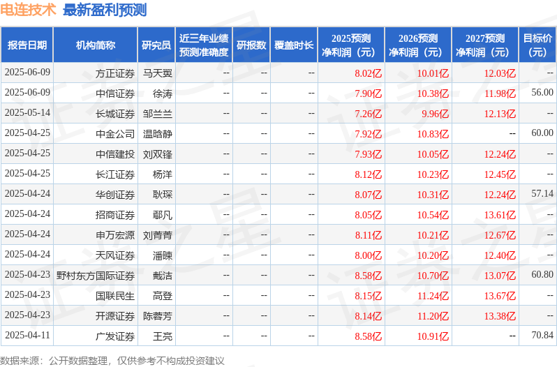 最新盈利预测明细如下: