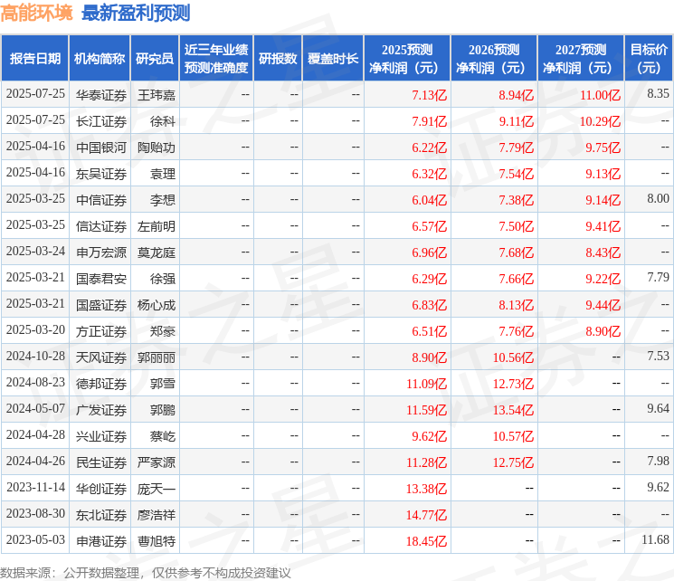 最新盈利预测明细如下: