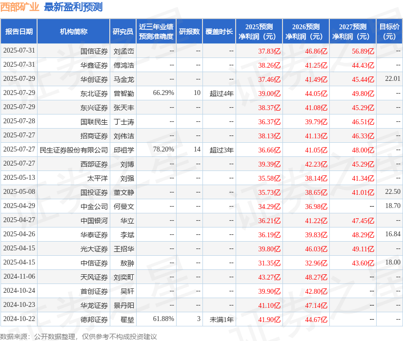 中邮证券有限责任公司李帅华,魏欣近期对西部矿业进行研究并发布了研究报告《玉龙铜业盈利高增,Q2业绩环比改善》,给予西部矿业买入评级。