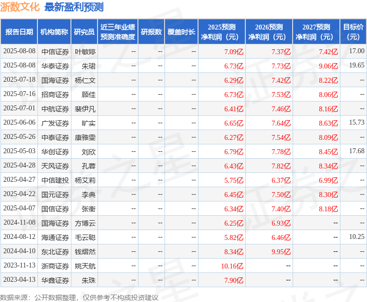 国元证券股份有限公司李典近期对浙数文化进行研究并发布了研究报告《2025年半年报点评:归母净利润高增,文化+科技创新驱动发展》,给予浙数文化买入评级。