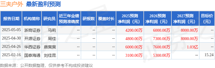华源证券股份有限公司丁一近期对三夫户外进行研究并发布了研究报告《具备品牌资源优势,行业发展有望增厚公司业绩》,首次覆盖三夫户外给予买入评级。