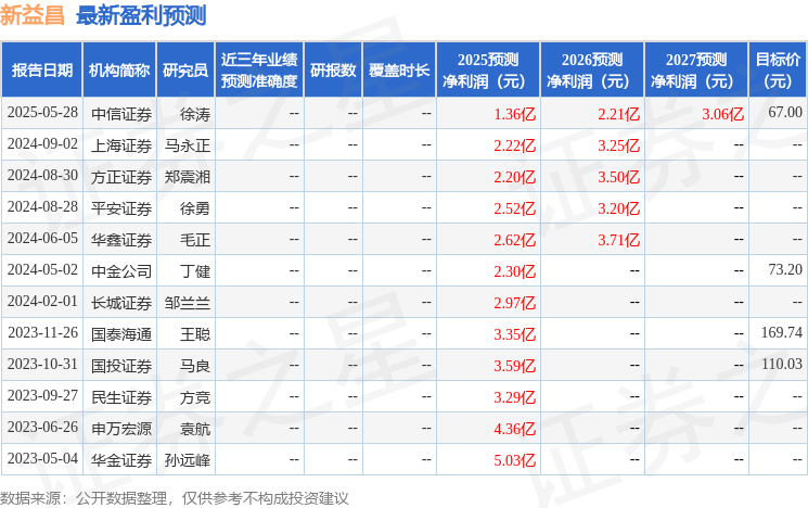 最新盈利预测明细如下: