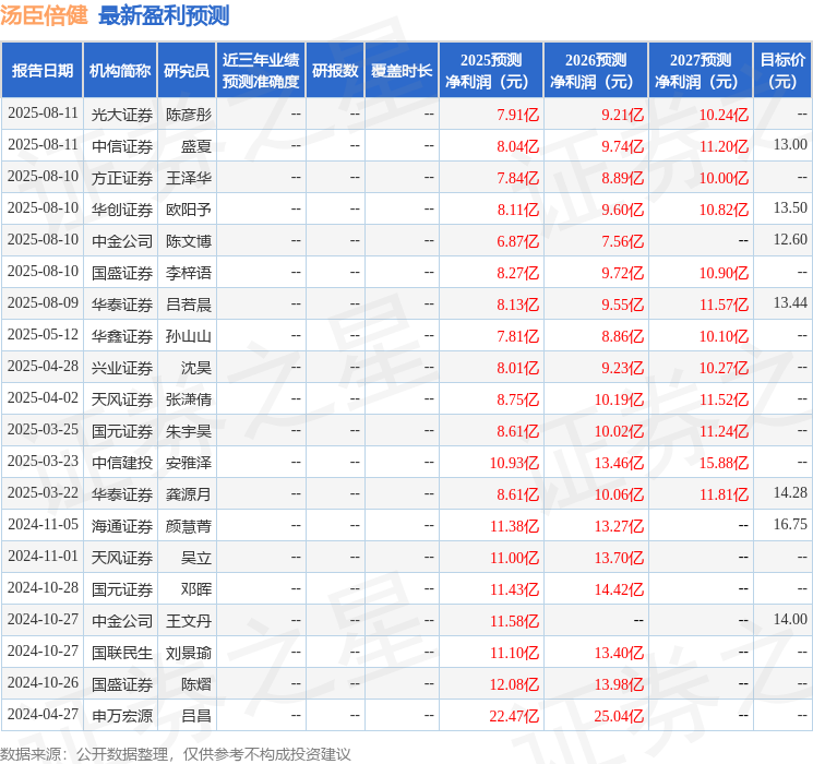 最新盈利预测明细如下: