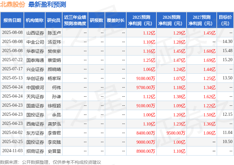 最新盈利预测明细如下:
