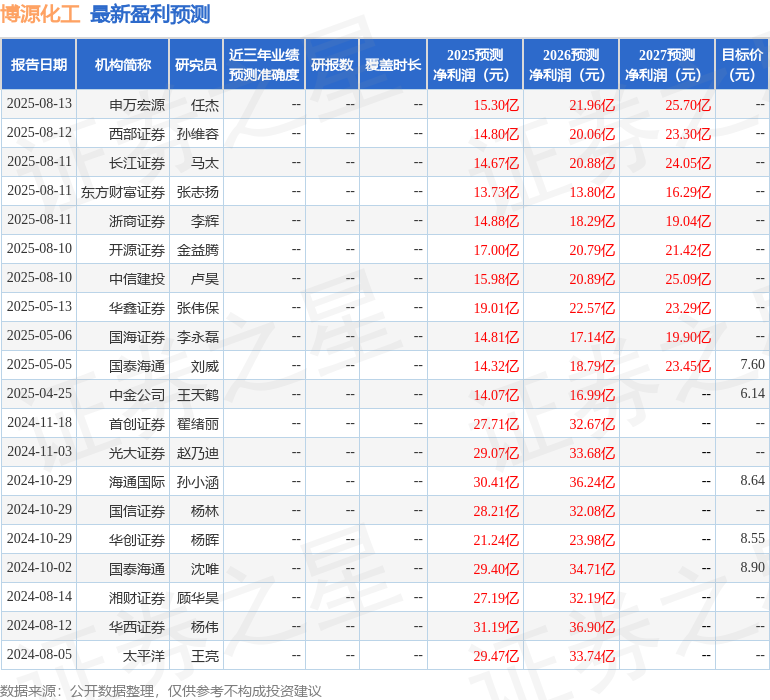 最新盈利预测明细如下: