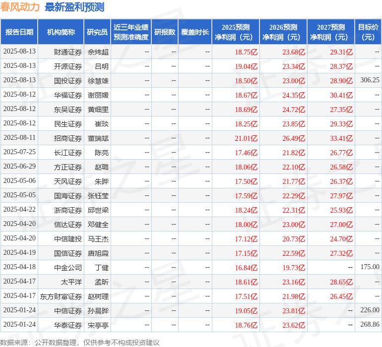 最新盈利预测明细如下: