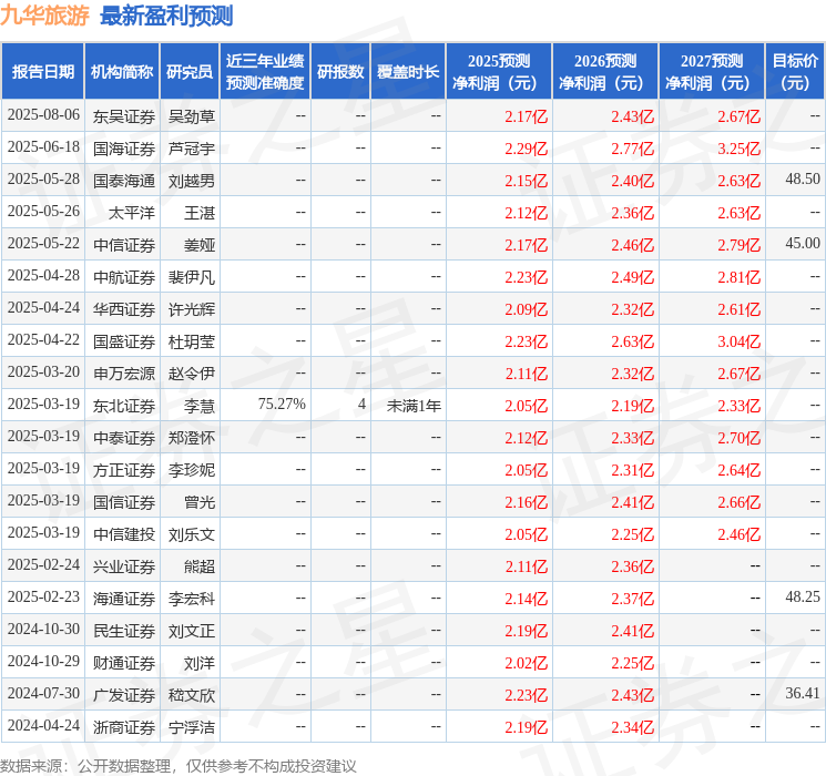 最新盈利预测明细如下: